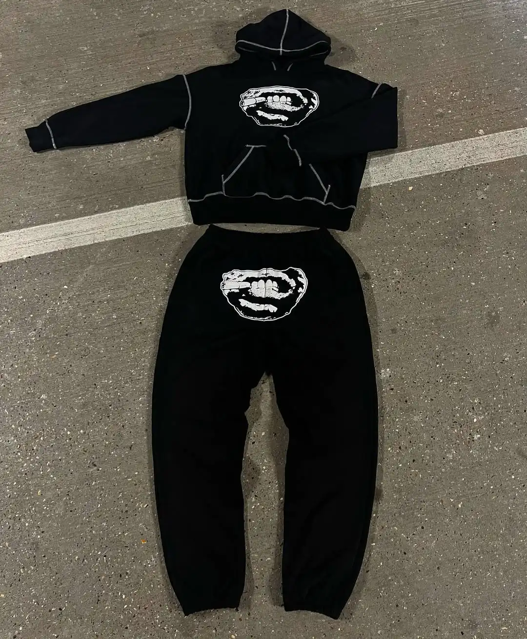 Punk hip hop fashion popular men suit American new Gothic Harajuku embroidery design jumper oversized loose casual tracksuit